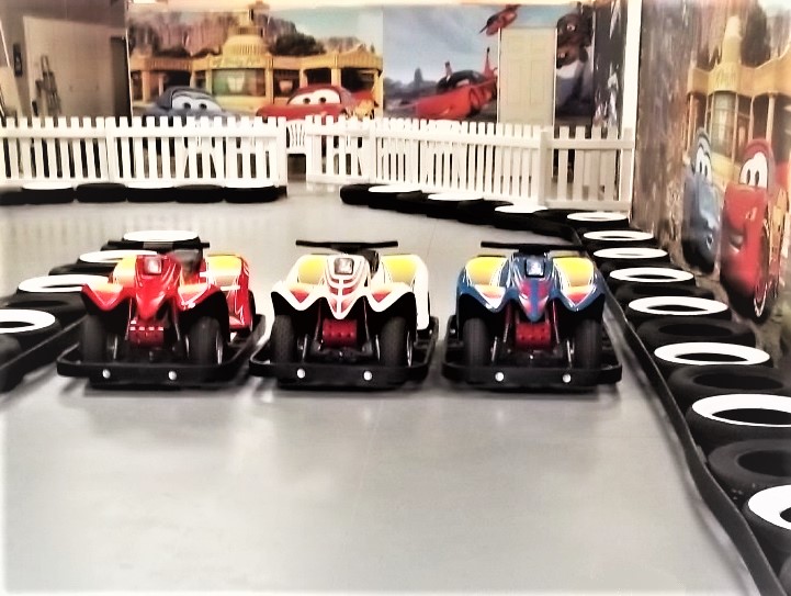 by offering battery coin-operated vehicles on a track.